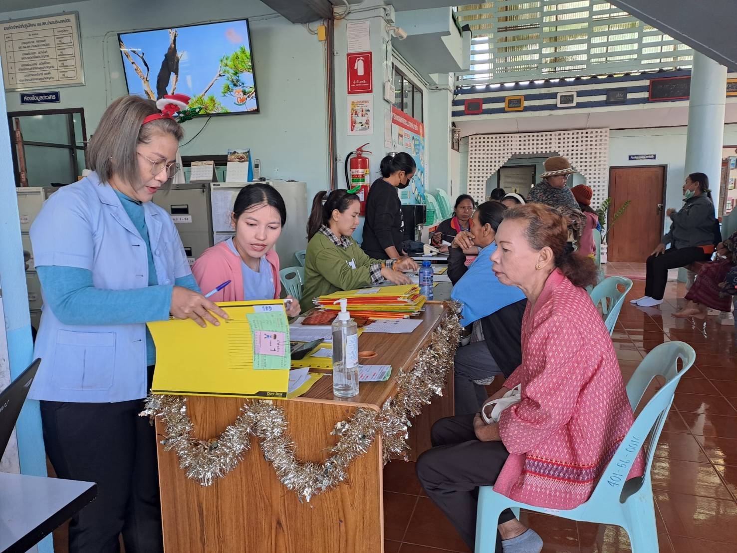 ออกตรวจคนไข้และจ่ายยากลุ่มโรค NCDs รวมถึงทีมงานทันตาภิบาลโรงพยาบาลส่งเสริมสุขภาพตำบลบ้านขะเนจื้อ