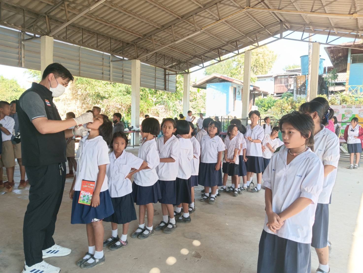 แก่เด็กไทยอายุ ๐ ถึง ๕ ปี และเด็กต่างชาติอายุต่ำกว่า ๑๕ ปี ในเขตพื้นที่รับผิดชอบจำนวน ๓ หมู่บ้าน