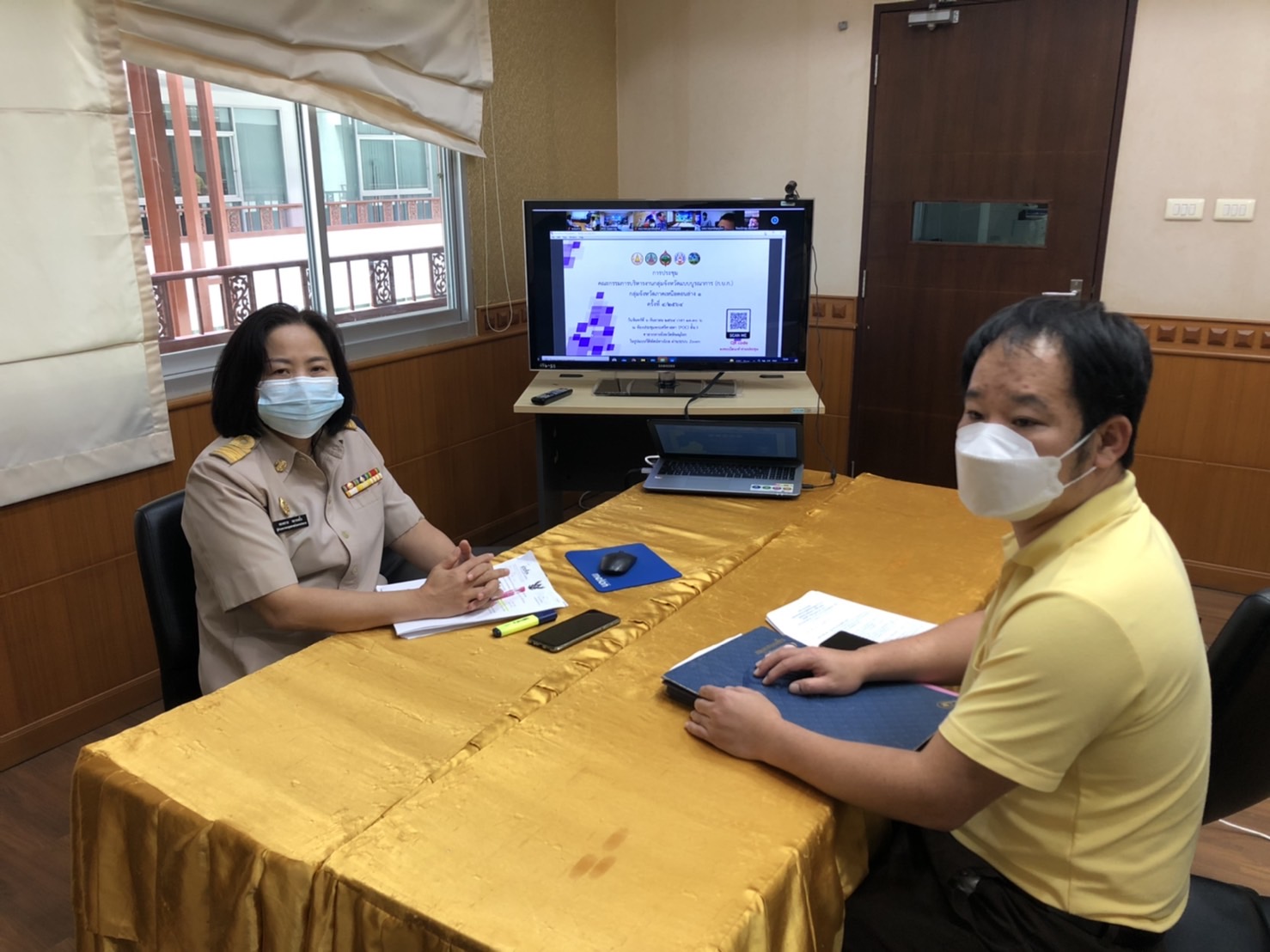 นางทองทราย หมายหมั้น ผู้อำนวยการกองยุทธศาสตร์และงบประมาณ พร้อมกับ นายเหมกรณ์ เสมบาง นักวิเคราะห์นโยบายและแผนงานชำนาญการ ได้เข้าร่วมประชุมคณะกรรมการบริหารงานกลุ่มจังหวัดแบบบูรณาการ (ก.บ.ก.) กลุ่มจังหวัดภาคเหนือตอนล่าง ครั้งที่ 4/2564 ในรูปแบบวิดีทัศน์ทางไกล ผ่านระบบ zoom ณ ห้องประชุมกองยุทธศาสตร์และงบประมาณ องค์การบริหารส่วนจังหวัดตาก ในวันจันทร์ที่ 6 กันยายน 2564 เวลา 13.30 น.