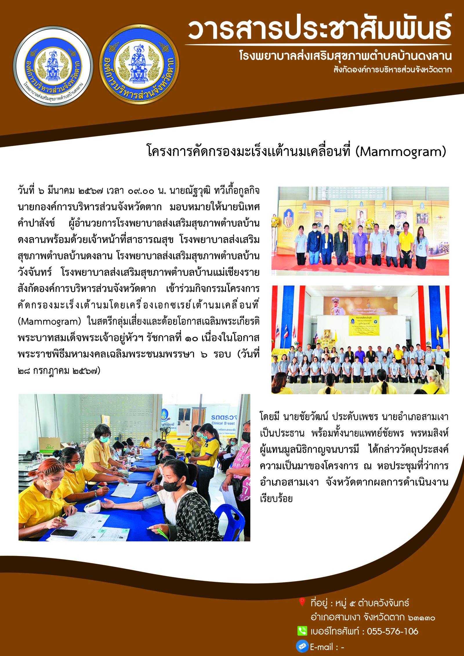 โครงการคัดกรองมะเร็งเต้านมเคลื่อนที่ (Mam Mogram) (6 มี.ค. 2567)